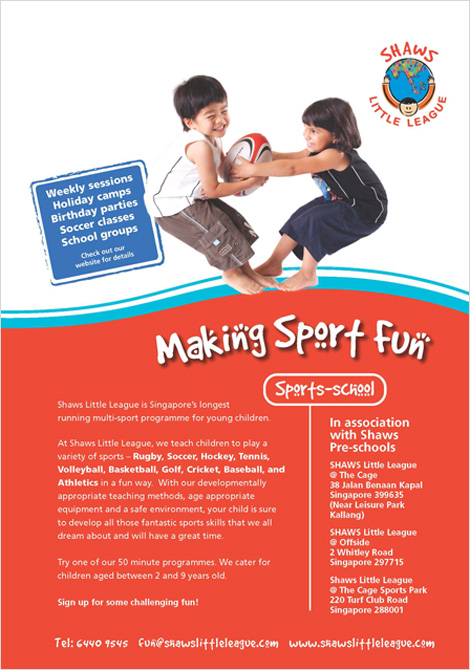 Call Shaws Little League (65) 6440 9545 or visit www.shawslittleleague.com