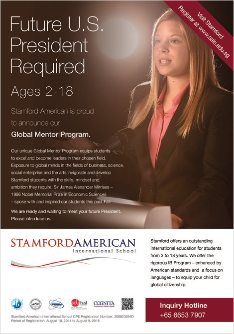 Students at Stamford American International have access to the best international minds and leaders in the fields of business, science, social enterprise, athletics and the Arts through our unique Global Mentor Program. Recent mentors to engage with Stamford students are Prof. Ei-ichi Negishi, a 2010 Nobel Laureate for Chemistry and Sir James Mirrlees, 1996 Nobel Laureate for Economics. Also this year Stamford swimmers have had the chance to be trained and relay against American Olympic Medalists and World Record Swimmers, Jessica Hardy, David Plummer and Nathan Adrian.