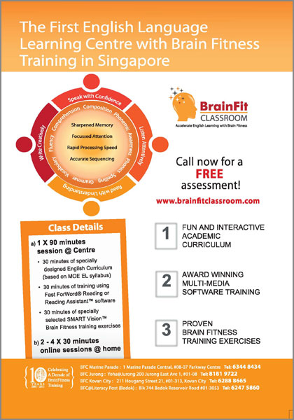 Teachers here combine structured language instruction with brain fitness training. Its English Language instruction is closely aligned with the MOE English syllabus and comprises computer-based learning on FastForWord Reading (FFW) and Reading Assistant (RA) as well as customised trampoline exercises.