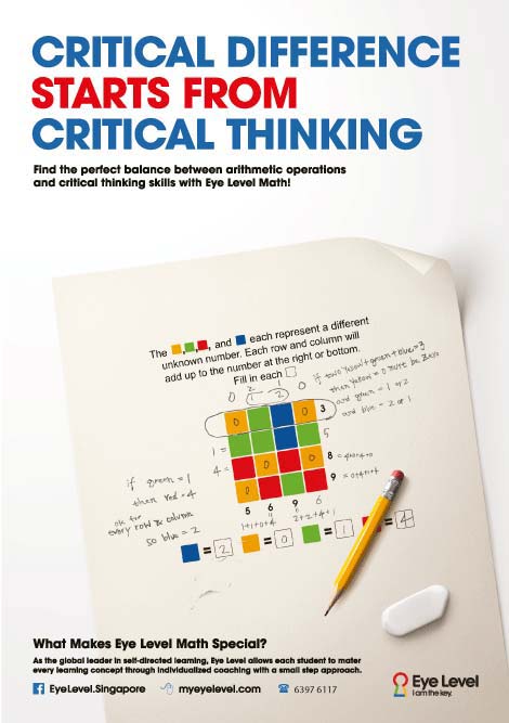 Eye Level Programmes are different from other enrichment programmes as it individualises every programme for each Eye Level student. Furthermore, it inculcates critical thinking skills as well as Self-Directed Learning (SDL) skills.