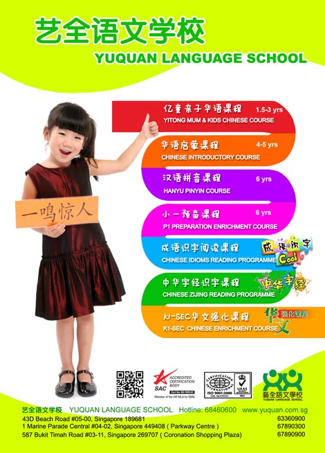 Yuquan enhanced its learning environment and became a premier school for Chinese language. Yuquan also has state-of-the-art resources that include branded literacy teaching materials such as Chinese Idioms Literacy supplements. Its lessons seemlessly combine various aspects like Chinese characters learning, learning of idioms,comprehension training and essay writing. While the students are learning Chinese idioms at an incredible pace, they can also master the commonly used characters that appear in the idioms simultaneously. Yuquan also conducts Chinese enrichment courses in Nanyang Primary School, Henry Park Primary School, Ai Tong Primary School and many others. It also offers teacher-training and courses for children aged 18 months onwards. All lessons are conducted in Mandarin.