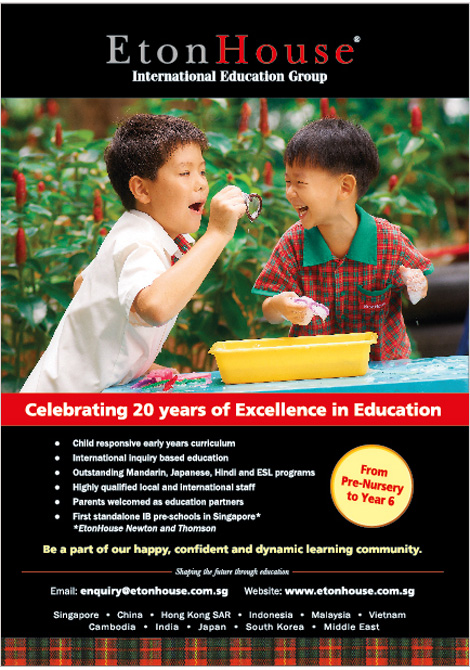 In 2015, EtonHouse opens 3 new pre-school campuses in Singapore – 1 on Sentosa Island, and 2 on Bukit Timah (215 Upper Bukit Timah Road and 681 Bukit Timah Road which is in the premises of Hwa Chong International School). FOR MORE INFO Tel: (65) 6746 3333 Web: www.etonhouse.com.sg