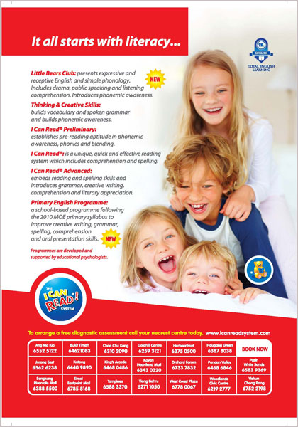 Following the meteoric success of the reading programme, Annabel andTony set out to develop pre-reading and post-reading programmes. After a child learns to read, Total Literacy centres teach comprehension, vocabulary, spelling, creative writing in all text types, oral presentation skills and all aspects of English literacy, using only qualified expat teachers with English as a first language.