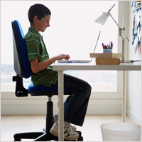 Buy a good chair and your back will thank you.Choose a chair with a back that inclines inwards to support the lumbar area. The contours of a chair should form the natural curves of the spine. Its back should be wide enough to support shoulders. If using a household chair, add a wedge cushion called a lumbar roll to prevent back strain and slouching. Chairs with armrests take the weight off neck and shoulders. Lower arms allow children to pull the chair close to the desk.