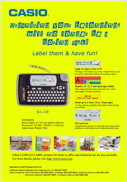 FOR MORE DETAILS: call (65) 6221 6433 or email sales@marco.com.sg. www.casio-intl.com