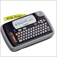 • Keyboard layout: QWERTY • Printing resolution: 200 dpi/96 dots • Fonts: Sans-serif • Character styles: Normal/Bold/Outline • Power supply: 6 x AA-size alkaline (LR6) batteries (sold separately)